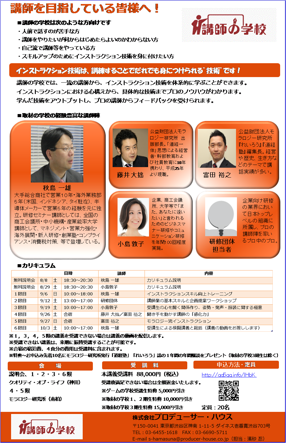内容:講師業の基本スキルと企画提案ワークショップ